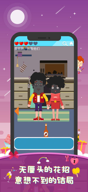 3、什么你不知道怎么玩,总之整点事情,比如拆散情侣或者恶搞对联只要你高兴就能过关。