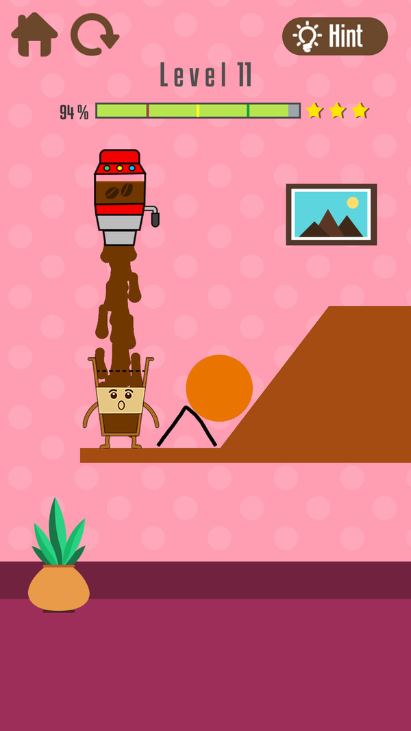 画线以创造咖啡到达悲伤咖啡杯的路径。 完全用咖啡填充,让悲伤的咖啡杯开心。 尝试找到自己最好的方法来绘制线条并完成每个级别而不使用提示。 完成3星级的所有级别,玩得开心。