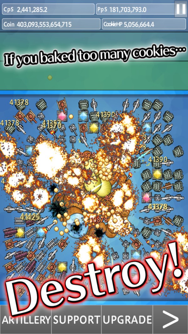 1、以高火力摧毁大量饼干的暴爽游戏;