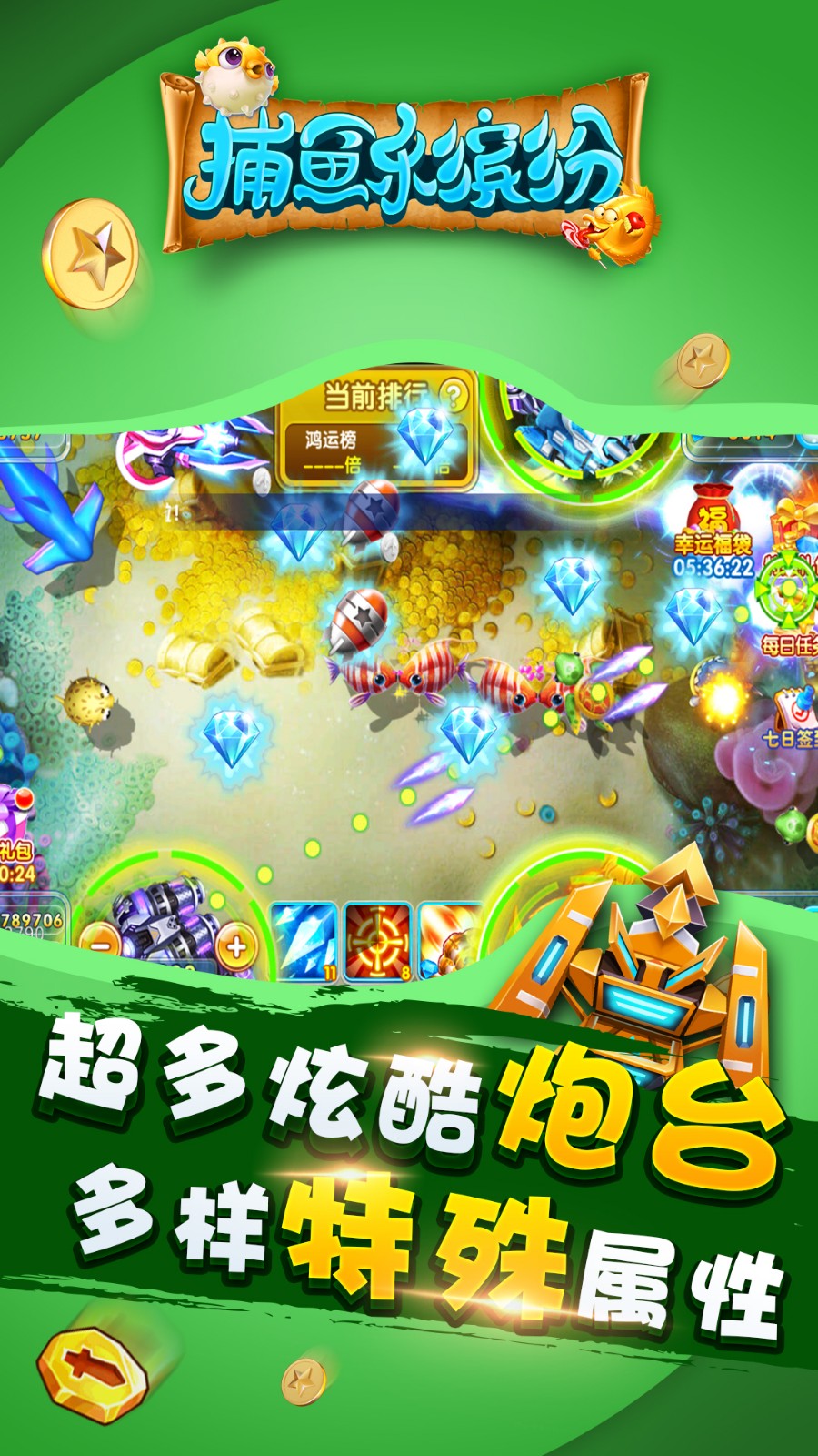 4、更多倍率!更多场景!更多华丽炮台!让街机千人捕鱼乐趣无穷!