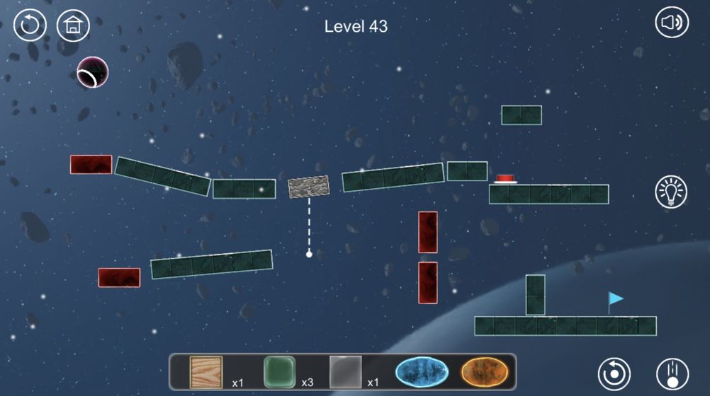 花了一个半小时全部通关了,没用过提示,有几关稍微有点卡住,用笨办法慢慢蹭强行过的,很多关有些给的地方完全没用到,比如最后一关的右上角。给过不去的玩家稍微提个醒,可以先把放块放在红砖上再放传送门,能以慢速进传送门,很多不能直接放砖块的地方可以靠小球推过去,一次不行就多试几次,碰到有遮挡的按钮可以先错位放一个,再放一个让他自然倒过去。有些需要玻璃块去的地方只能靠小球推的话可以在中间放一个木箱就能够间接推过去了。希望以后能出更多的关卡,以及美化一下UI。
