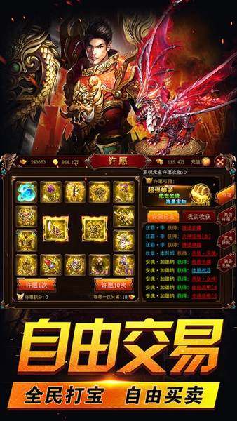 超激情打宝体验,极品装备、高级技能打怪爆,自由交易随心所欲。