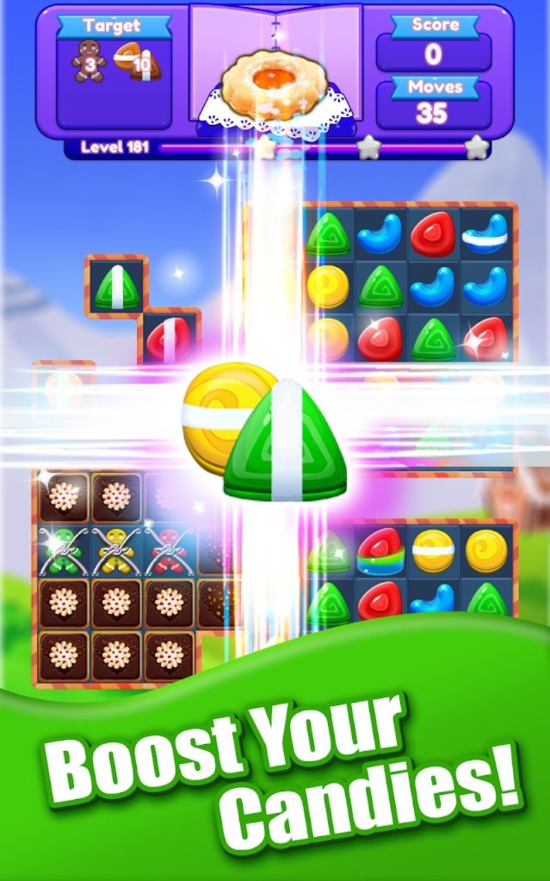 交换并匹配4个或更多糖果以获得魔法炸弹