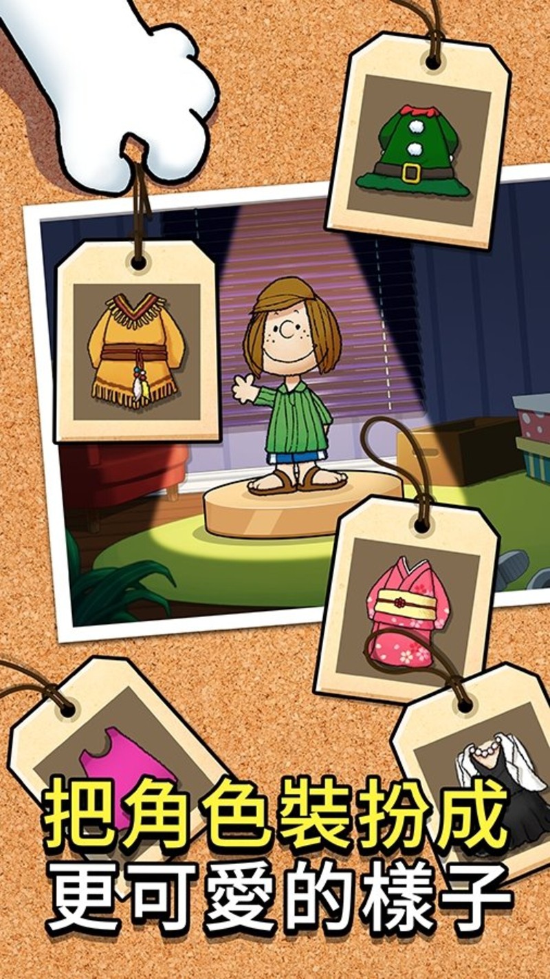 找出不同之处,收集史努比的朋友们,使用背景、角色、服装来可以装修出属于自己的史努比世界!