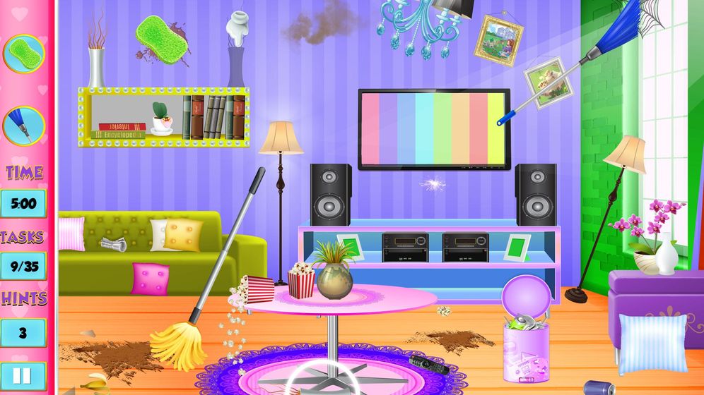 像专业修理工和家政女佣一样开始!一个非常凌乱的卧室,到处都是衣服和乱七八糟的东西,书在地板上,鞋子在错误的地方!在清理这个凌乱的房间和肮脏的房子模拟器游戏之前,有很多装饰和改造工作要做!您的家居室内装饰技巧将在清洁脏游泳池时进行测试。使用水池清理网从水中清除垃圾。去除充满真菌的水后需要清理池。通过修复破损的家用电器来展示您的修理技巧。修理厨房水槽,卧室灯,洗手间灯等等。在休息室修理电视,修理冰箱以获得更好的散热效果。