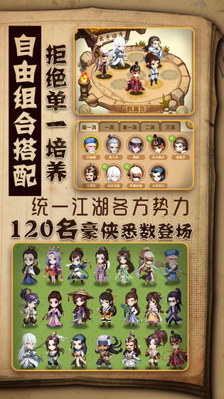 2、侠客:侠客组合自由搭配,告别单一培养。