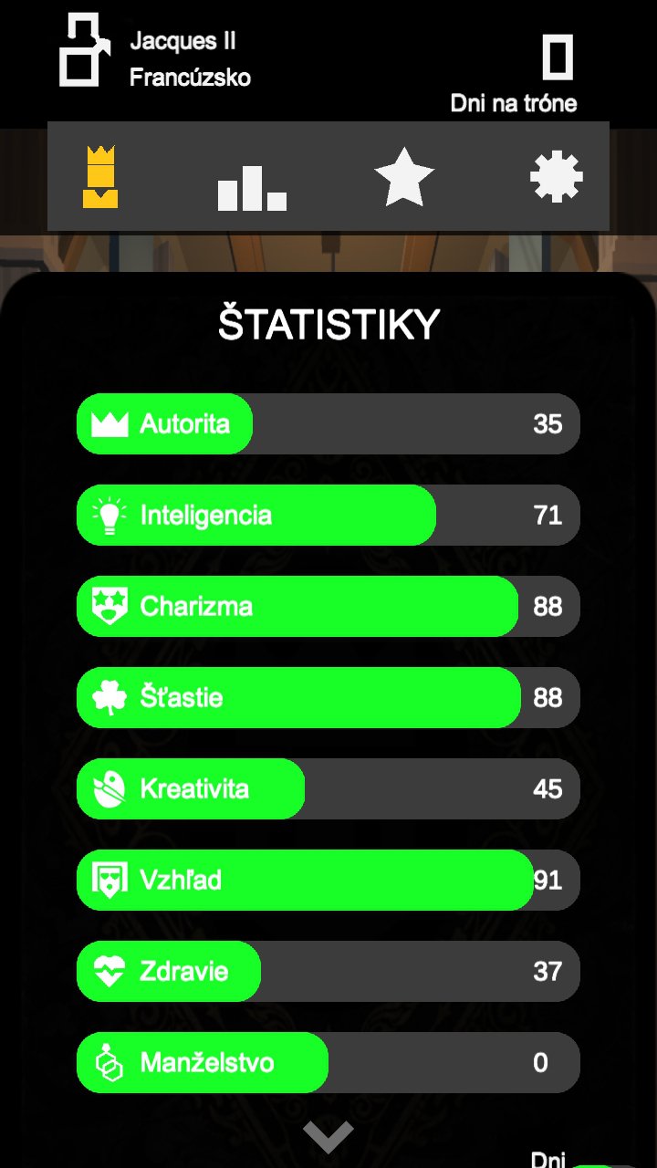 一款纸牌游戏,游戏中,玩家做的每个决定都会影响游戏进程。开动脑筋左右滑动做出合理决策,尽可能的保住自己的王位!