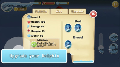 2、体验真实海豚模拟玩法,捕获不同的鱼类,从中积攒能量,提升自我等级。