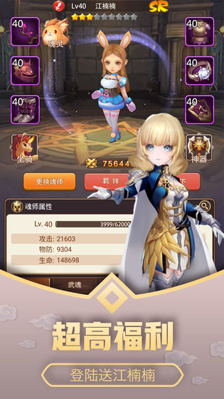 福利超高,登录送千元元宝,SR将七怪江楠楠,和小伙伴一起勇闯斗罗大陆!