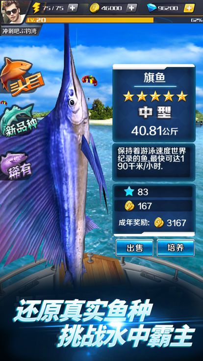3、每一片不同的海域都会有稀有的鱼种出现,提升你的钓鱼技巧在这里来不断的寻找。