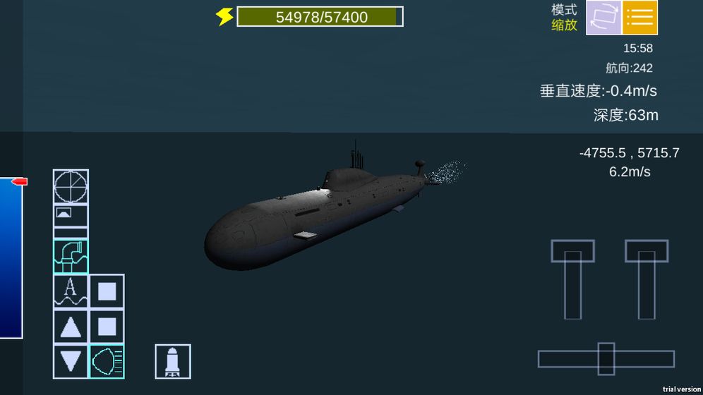 游戏中没有了血条,包括潜艇的浮力,都采用实时的物理模拟。