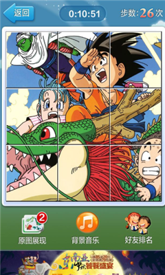 3、九宫格模式:屏幕中有一个小空格,只有空格周围的拼图可以移动。