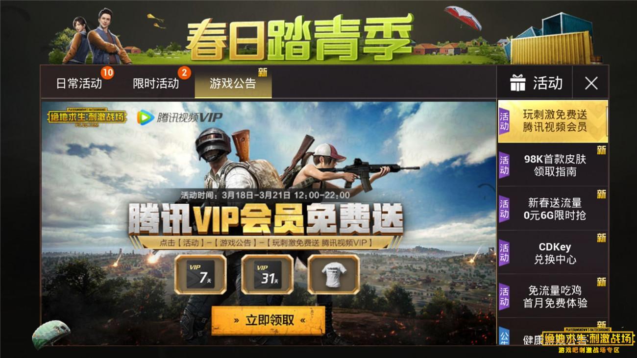 刺激战场推出了VIP周卡、月卡免费获得活动,但是很多玩家不知道在哪里参加这个活动,下面游戏吧小编为大家带来刺激战场腾讯视频VIP周卡、月卡领取地址,快来一起看看吧!