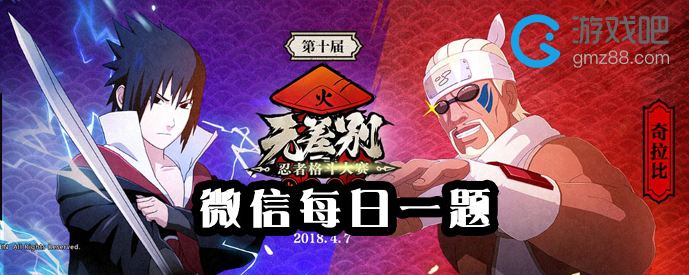 游戏吧小编为大家带来了火影忍者每日一题:大蛇丸戒指上刻的是什么字?(答题格式:hy+答案。如你的答案是火影忍者,则回复:hy火影忍者。各位忍者把正确答案告诉,就可以去领奖啦!)