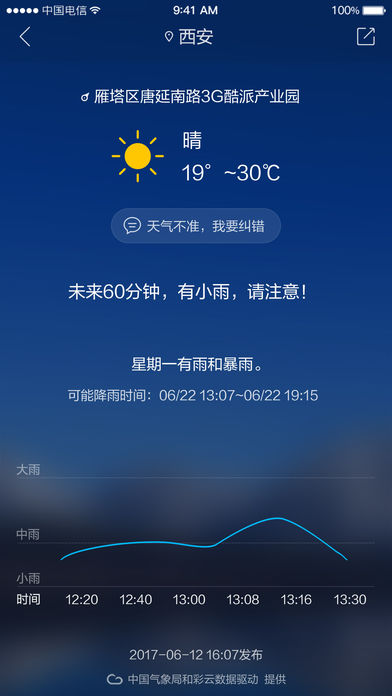 4、天气雷达:分钟级降水量预报,准确预测未来2小时是否下雨及降水量,从此再也不用纠结出门到底要不要带伞;