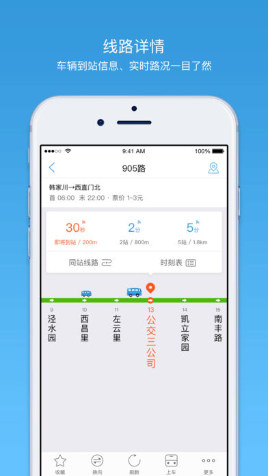 实时掌上公交:北京、上海、广州、深圳、天津、武汉、东莞、佛山、成都、苏州、厦门、鞍山、安阳、保定、包头、长春、昌吉、长沙、常州、重庆、大连、福州、赣州、邯郸、杭州、淮安、呼和浩特、惠州、焦作、吉林、济南、精河县、开封、兰州、拉萨、临沂、南昌、南京、南宁、南通、南阳、宁波、莆田、青岛、泉州、瑞安、三亚、商丘、绍兴、沈阳、石家庄、台北、太原、台州、唐山、温州、乌鲁木齐、无锡、西安、新乡、许昌、徐州、烟台、岳阳、张家口、郑州、中山、驻马店,更多城市敬请期待。