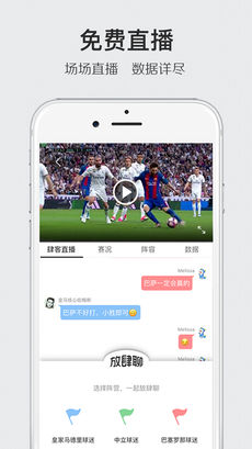 2.直播中超、欧冠、五大联赛等足球赛事,实时推送比分与统计数据;
