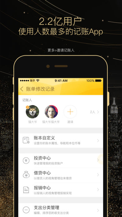 国内首个专业记账圈子诞生!在这里,可以邀请你的家人、生意合伙人、朋友一起记账,与志同道合的小伙伴一起分享记账经验!还有数百位理财专家在线互动,各种活动、理财课程免费参与,总有一款你的菜!