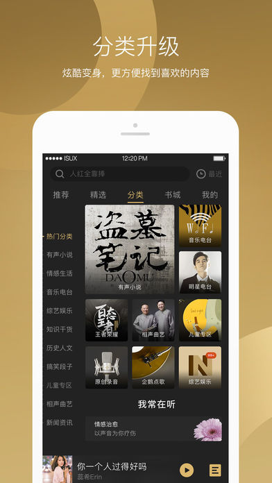 企鹅FM ios版v4.0.1是小编给各位小伙伴推荐的一款腾讯官方有声小说、音乐电台、历史人文、搞笑段子等内容。想听的小伙伴千万不要错过了哦。