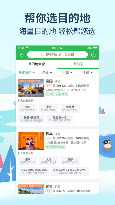 途牛旅游APP,优质的旅游服务提供商,为全国上百个城市,提供7x24小时服务!累计购买5700万+人次,400万+条真实点评,用户满意度高达95%!