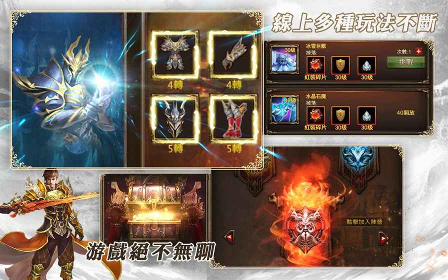 无限之战ios版是一款放置挂机游戏。职业体系丰富,不同的搭配,能玩出不同的战斗风格,玩家根据战斗需求进行组合。激情战斗当属跨服一战,最顶级的pk盛宴,你来打响。