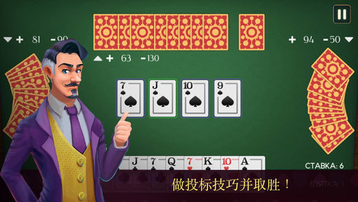 2、黑桃是一种纸牌游戏,要求玩家在回合中对戏法或牌顺序进行竞标,以赢得胜利。和电脑搭档一起玩对战两个电脑对手。