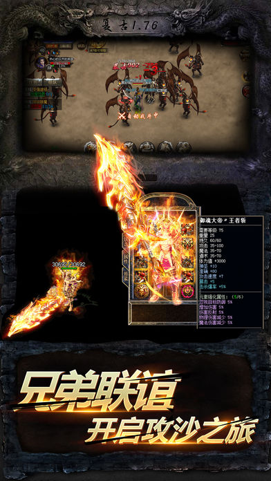 2、百服精英、魔族王者共聚上古战场,创新跨服结盟系统,500V500自由竞技,兄弟行会携手挑战巅