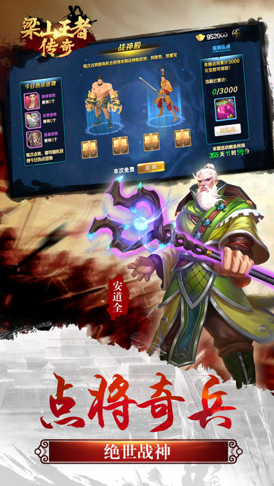 梁山王者传奇中你可以在战神殿中招募强大的武将,通过卡牌的形式现身的水浒英雄们将是你战斗的最大助力!游戏中的武将被分为多种品阶,快来看看你能否招募到高品武将啊!