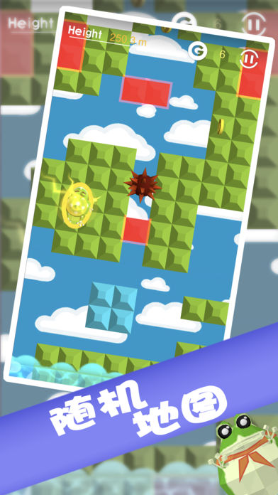 喷气蛙里面你需要跟随动感的节奏,帮助我们的小青蛙找到一个家!游戏中有多种皮肤,你可以通过获得高分解锁他们。游戏的地图随机生成,有一点点的Roguelike元素,喜欢的朋友们不要错过啦!
