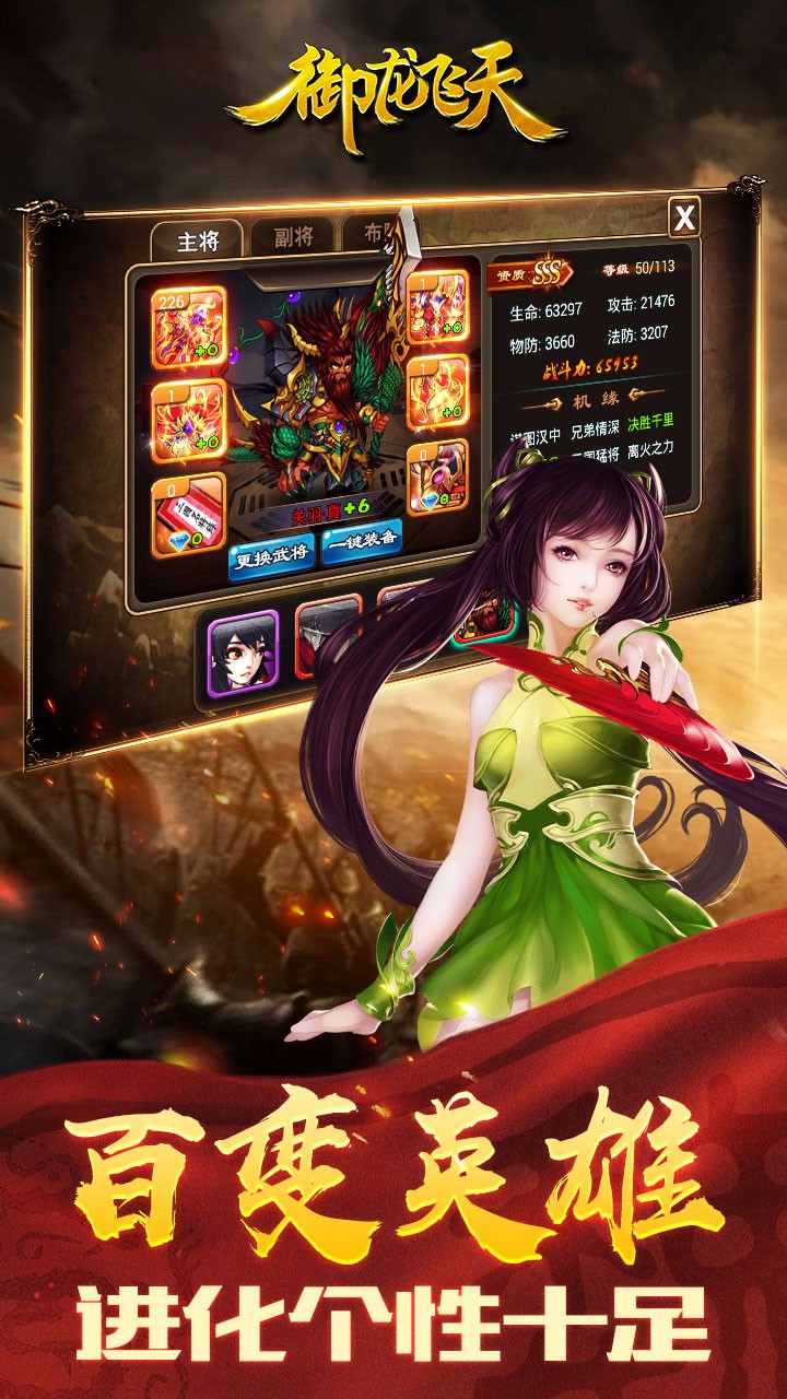 御龙飞天ios版手游是一款以养成武将为核心玩法的卡牌RPG手游,三国故事改编的战役和关卡充满了乐趣的战斗,华丽的技能都十分亮眼,有趣的游戏内容等待你的加入,快来试一试吧。