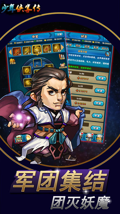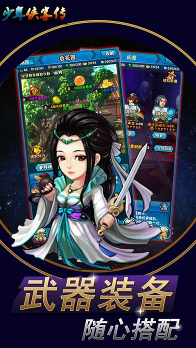 少年侠客传是一款背景设定史诗感爆棚的手机武侠风游戏。游戏中你将扮演一代大侠的少年时期,感受他无与伦比的成长经历。游戏好玩不累,人物建模精细,全景无缝大地图可以探索的地方非常多,可玩性很强!