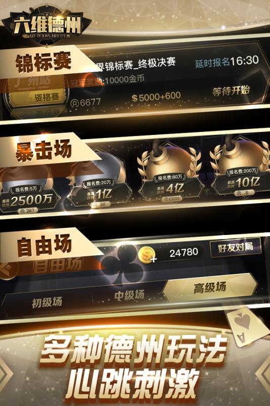六维德州扑克ios版手游是一款风靡全球的扑克牌游戏,玩法简单易懂,比拼你的技巧,比拼你的胆识,还有更多美女邀你来战。创新百人场,十多种不同玩法,让你体验壕的享受!