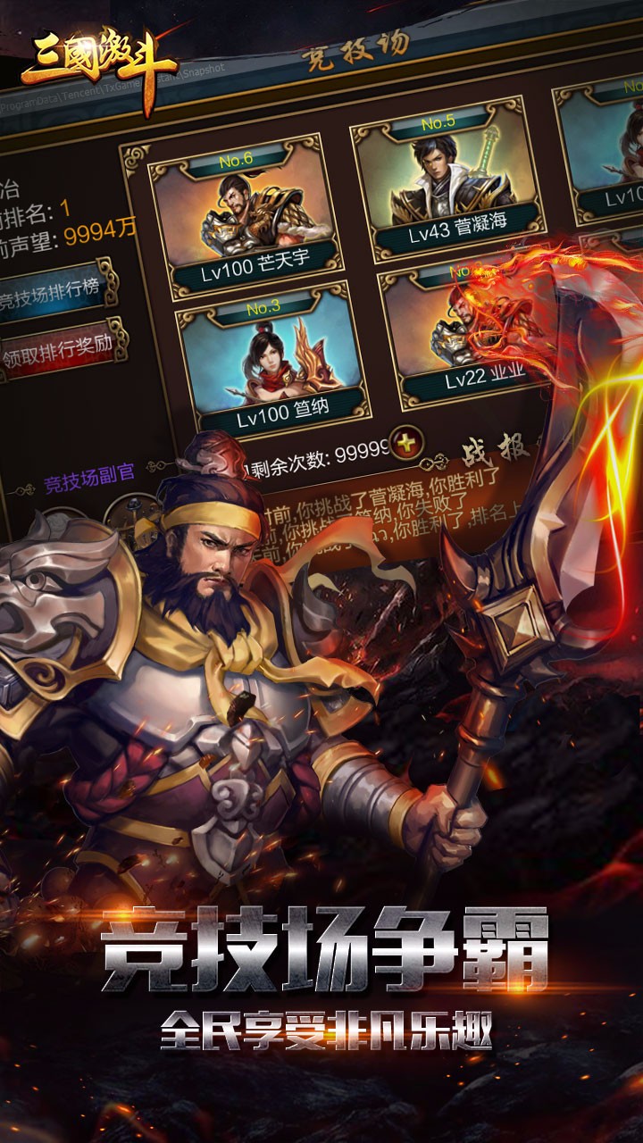 《三国激斗》是一款打击感十足的角色扮演类手游,完美三国勇士集结,历史名将呼之欲出,震撼的3d游戏场面,最先进的虚拟物理格斗引擎,丰富的游戏剧情,还原历史,让你感受最真实的三国战场!