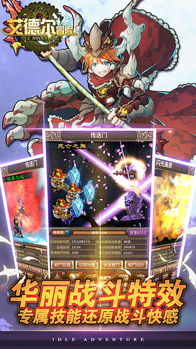 艾德尔二次元冒险是一款轻松不累的二次元挂机游戏。游戏中有丰富的战斗系统,十二种职业,六十六种职业搭配,两百多种技能组合,可玩性超高!游戏支持挂机升级的方式,好玩不累!