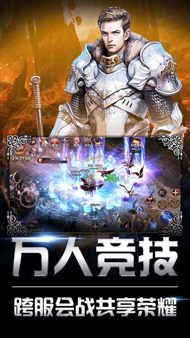 1、精美绝伦的3D场景,宏伟壮阔的世界,激情万丈的跨服争霸,让你随时随地尽情享受万人同屏PK的快感;