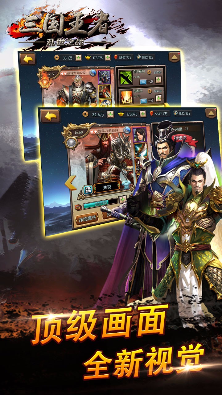 《三国王者》是一款十分有趣的千人对战RPG手游,选择你喜欢的角色进行战斗,著名三国人物集结于此,完美再现经典战役,绝妙排兵布阵,震撼战斗特效,尽享视觉盛宴。