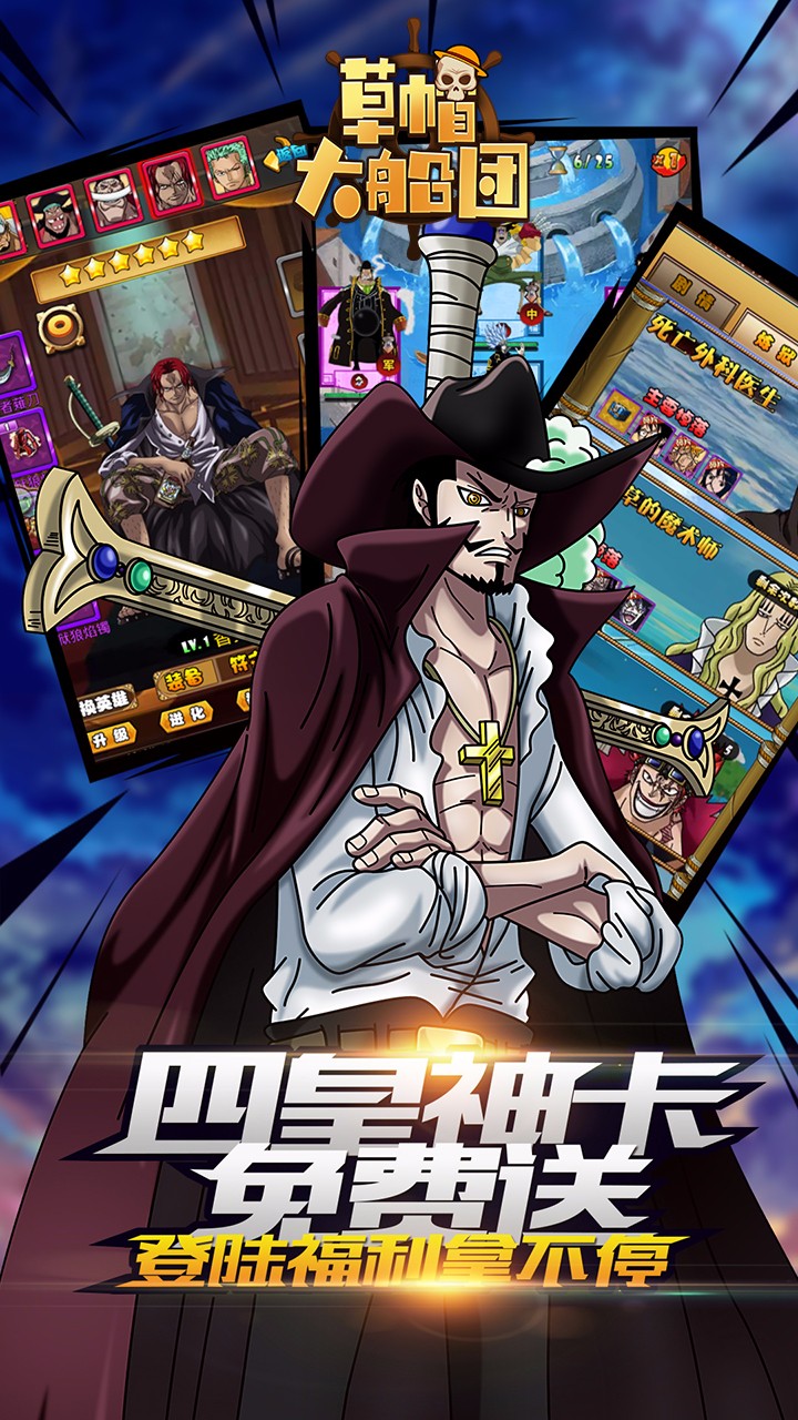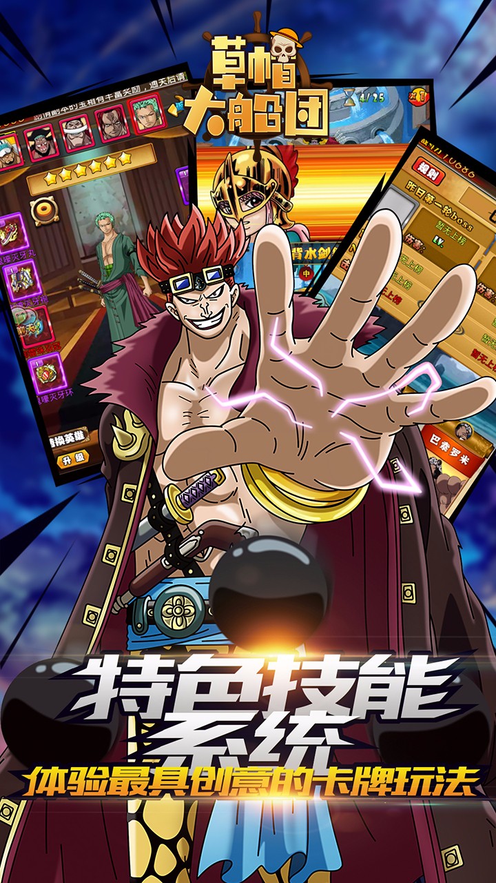 草帽大船团ios版手游是一款以航海王动漫为原型打造的卡牌冒险手游。草帽大船团的玩家们可以在这里体验到最新的航海故事。这款手游已经制作到了航海王的后期。十二新星已经全面登场。超多海贼王人物来袭,让游戏变得更加具有趣味性!