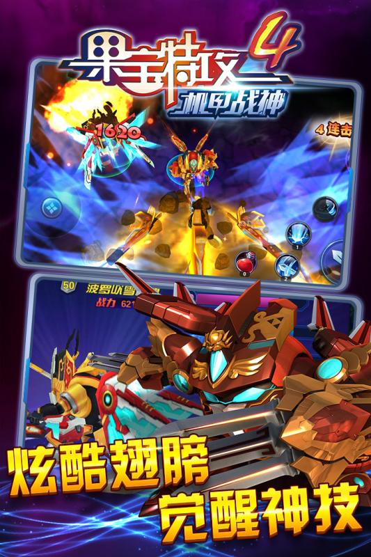 《果宝特攻4机甲战神》是一款根据热门动漫改编而来的动作冒险游戏,将化身为炫酷的机甲置身于科幻的世界与,各种怪兽展开激烈的对决!每一个果宝特攻拥有自己独特的技能,极限的操作激发内心强大的奥义,热血的战斗战神再次合体,感兴趣的快点来下载游玩吧!!