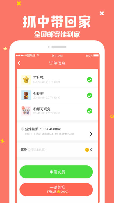 3.体验商场抓娃娃的乐趣,包邮寄到家。