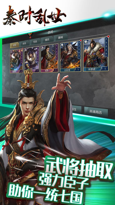 2、名将各有特色,有连破70余城的名将乐毅,有冷酷无情的战神白起,稳健坚毅的大将王翦,亦有智谋超绝的军师张良,尽得鬼谷真传的门客孙膑,他们尽待主公招募,助你成就千秋之业。哪怕面对强敌,看似毫无胜算,若能窥得敌方弱点,以大智布阵组将,鹿死谁手,尤未可知。