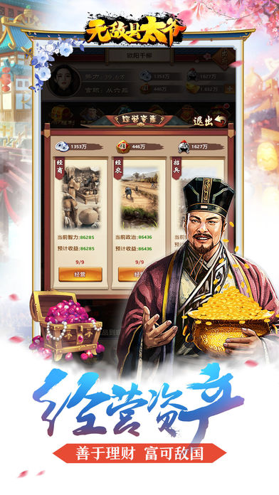 无敌县太爷是一款简单轻松的官场宫斗养成模拟游戏。游戏中玩家将会体验丰富的养成玩法,不单是养成主角,游戏还设计了好玩有趣的子女养成,可玩性更强!喜欢的朋友不要错过啦!