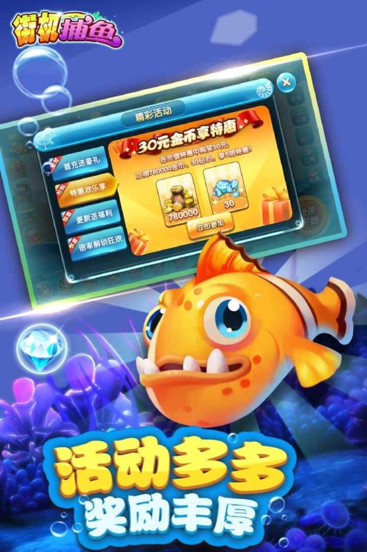 1、原经典街机捕鱼效果,绚丽画面,丰富玩法,真实交友趣味生动!