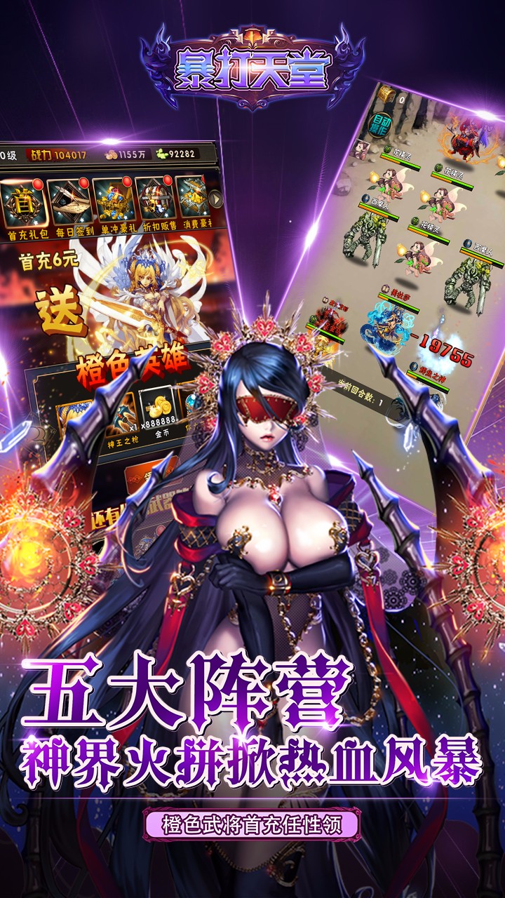 暴打天堂ios版手游是一款以神话剧情为题材的即时战斗类游戏,在游戏中,你既可以玩到传统的卡牌战斗,同时也可以畅享创新的进阶玩法,那唯美的神装和羽翼翅膀,一切全都凭实力获得哦!