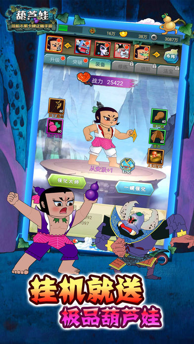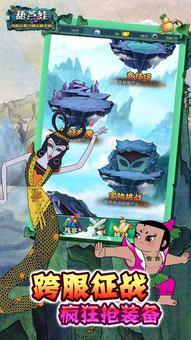 葫芦娃手机版采用水墨画的风格,为大家呈现了一个葫芦娃们与妖怪们斗智斗勇的冒险故事。看过动画片的人肯定知道,每一个葫芦娃都有不同的能力,你需要发挥他们的能力,从蛇精和蝎子大王手下救出爷爷!