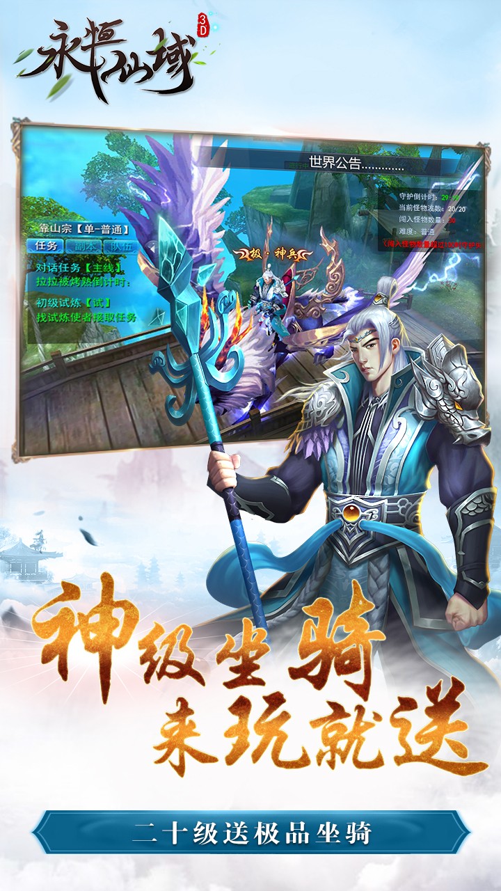永恒仙域ios版手游是一款以经典玄幻修真为题材的动作类RPG手游,精美的3D仙侠战斗画面能够为我们带来更精彩的玄幻战斗场景!游戏精心构建了一个瑰丽的东方式仙侠世界。内容包含锻造、灵兽、活动、仙盟,副本等多样系统,带给玩家丰富而刺激的体验。