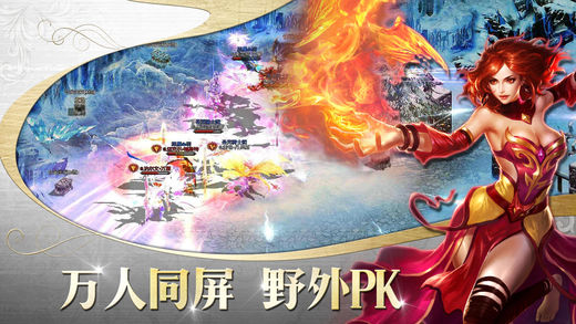 2、精美绝伦的3D场景,宏伟壮阔的世界,激情万丈的跨服争霸,让你随时随地尽情享受万人同屏PK的快感;