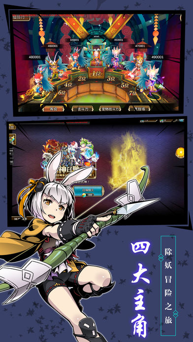 1、灵猴高爆发职业战士,妖狐大范围攻击法师,玉兔轻捷优雅突击射手,狂牛杀戮机器狂战士,酷炫技能一路通妖除魔,踏上神器的冒险之旅、