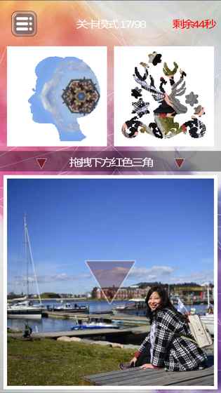 1、需要拖拽红色三角来找到那个隐藏的位置,以让上面的两张万花筒图片相同;