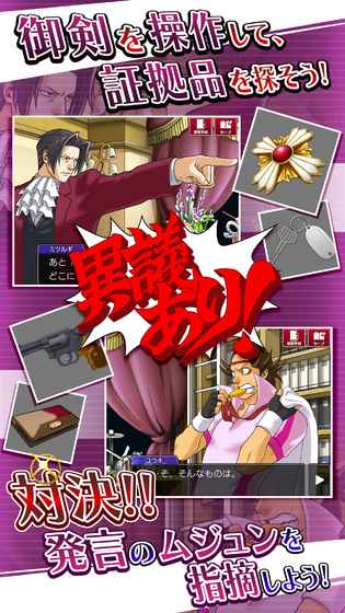 逆转检事ios版这个游戏是一款解谜类型的游戏,在这个游戏中玩家朋友可以尽情的享受游戏乐趣,玩家朋友们可以通过游戏中的各种细节发些事情的真相,快来下载玩玩看吧!