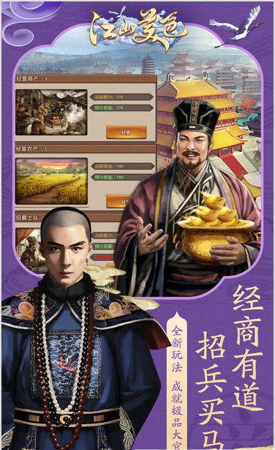 江山美色ios版是一款当官养成手游,游戏立意创新,能让你体验古代尔虞我诈的官场智斗,或者是心机重重的宫斗。游戏中你将扮演高官,培养自己的实力,赢取美人。